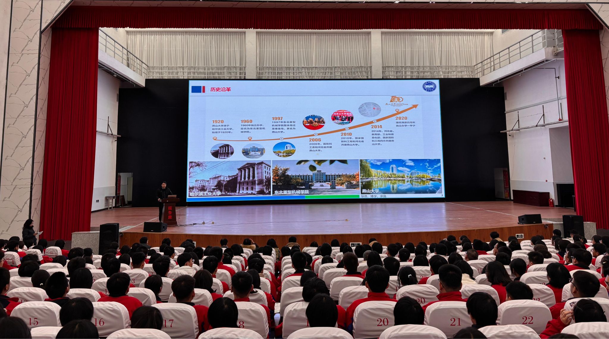 在四所中学宣讲过程中,谢波系统介绍了我校“建校溯源105周年、独立办学65周年、扎根秦皇岛40周年”的发展历程,充分展示了我校在学科建设、师资队伍、标志性成果、人才培养、科技竞赛以及校园文化等方面的综合实力,重点讲解了我校2025年的招生录取政策,宣讲活动受到中学师生的一致好评。